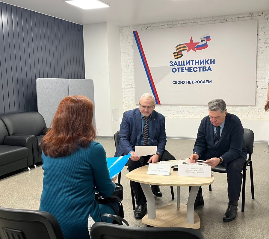 ️Провел прием в филиале фонда «Защитники Отечества в Республике Карелия». Вместе с общественным помощником по городу Петрозаводску Олегом Беляевым приняли обращение и ответили на вопросы по оказанию содействия в переселении с территории Украины пожилого отца жительницы республики.